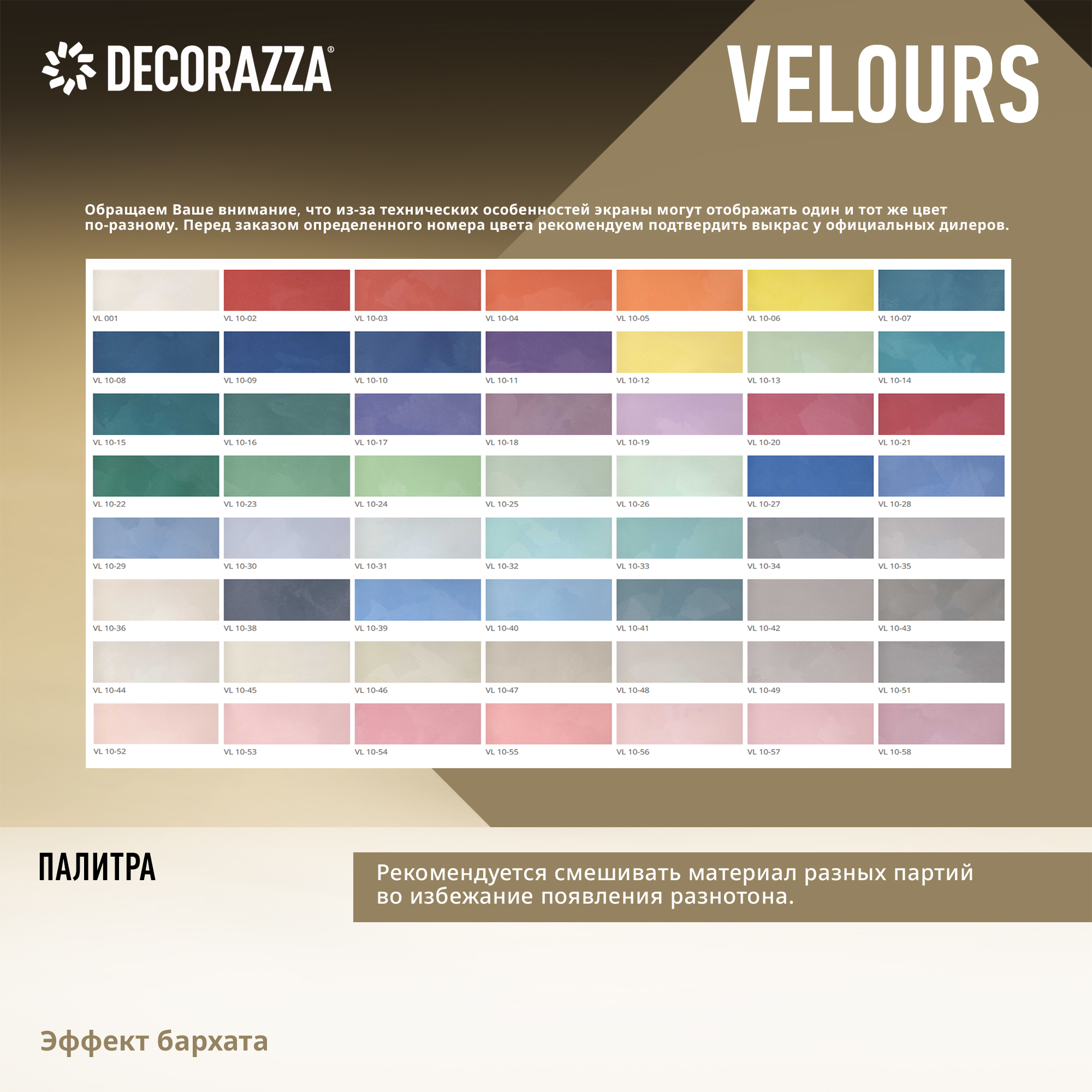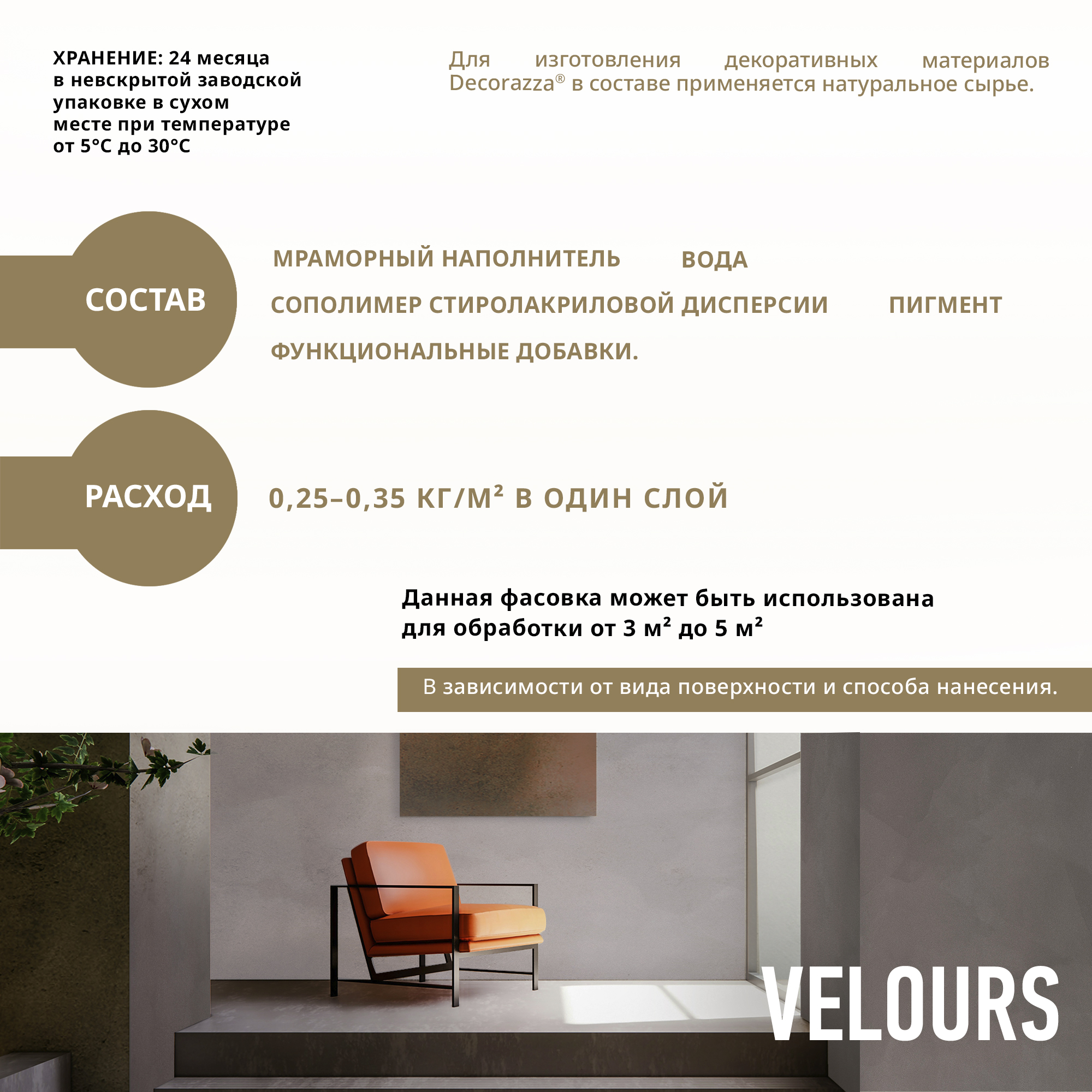 Тип продукта: Декоративное покрытие VELOURS - Декоративное покрытие для формирования эффекта гладкой или драпированной бархатной поверхности
