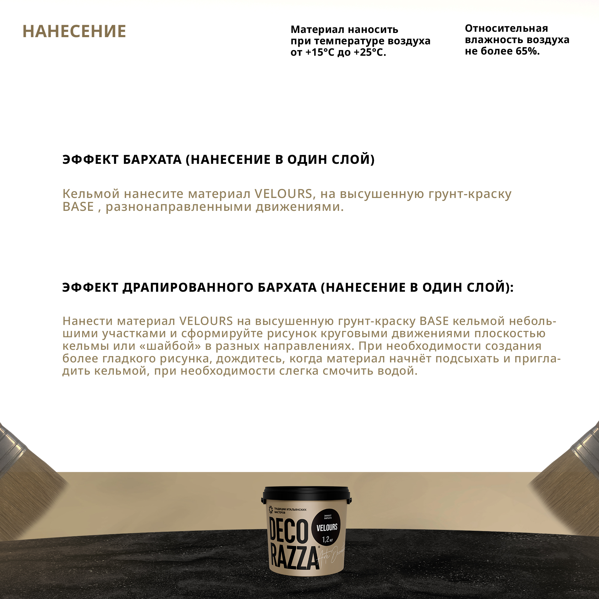 6. Материал наносить при температуре воздуха 15-25 °С и относительной влажности воздуха не более 65%.