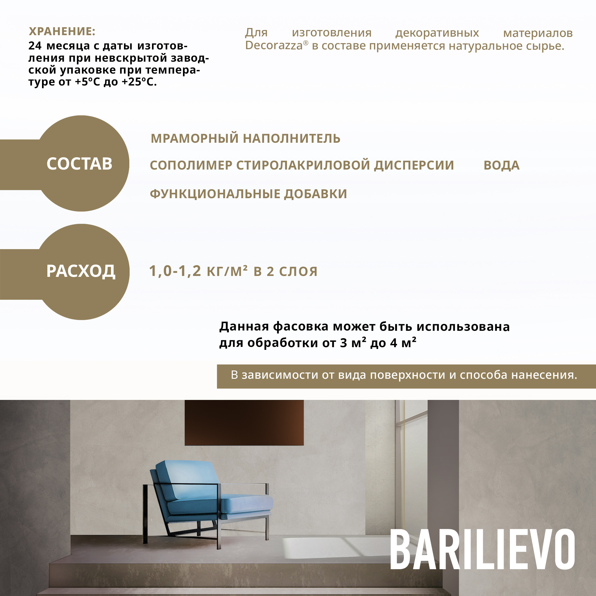 Тип продукта: Фактурное покрытие BARILIEVO - Фактурная декоративная штукатурка с эффектом ткани, бетона, марокканской штукатурки, металлических листов, камня и других поверхностей