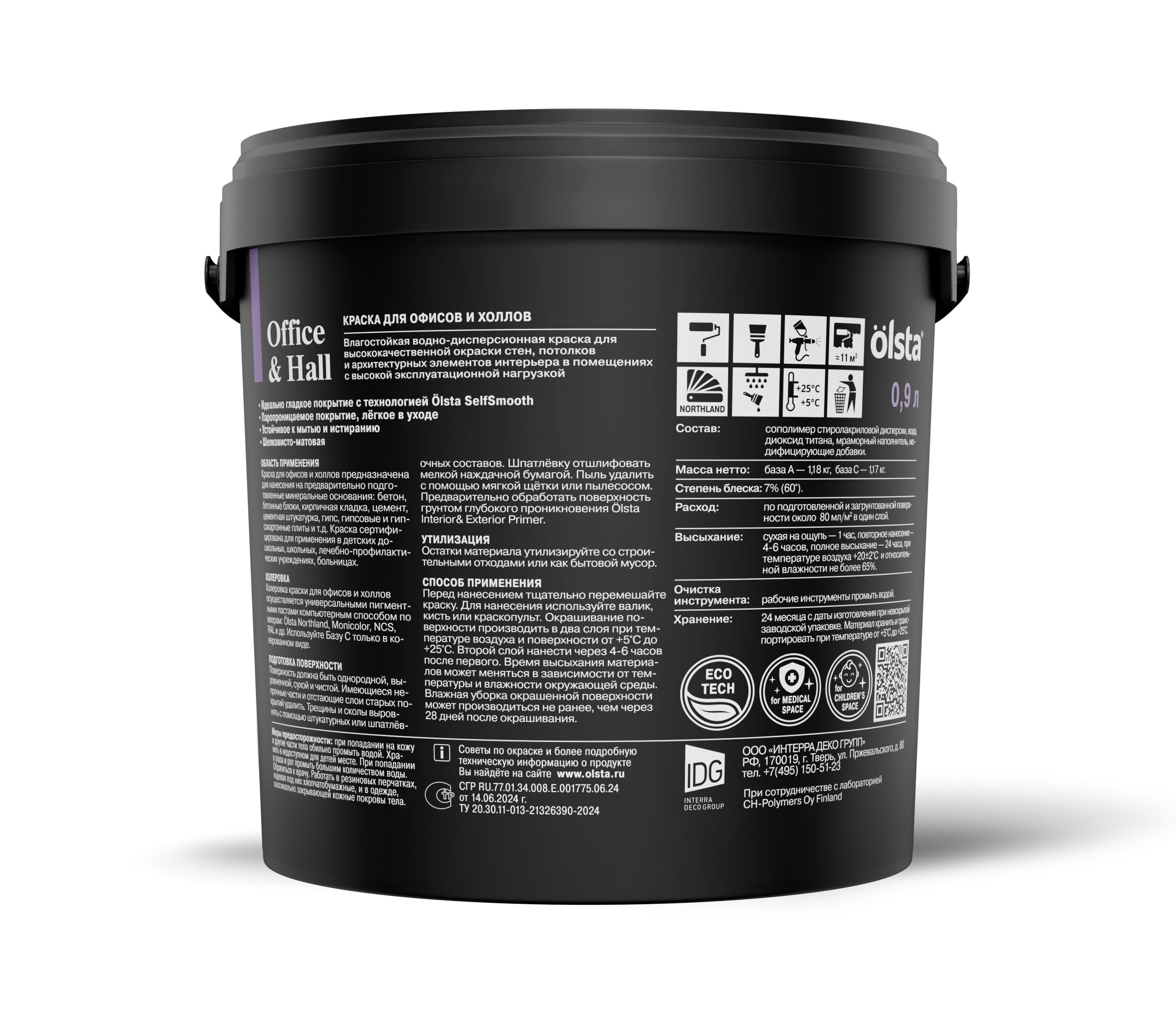 Тип продукта: Краска для офисов и холлов Office&hall - Интерьерная краска для стен и потолков, особо устойчивая к мытью и истиранию
