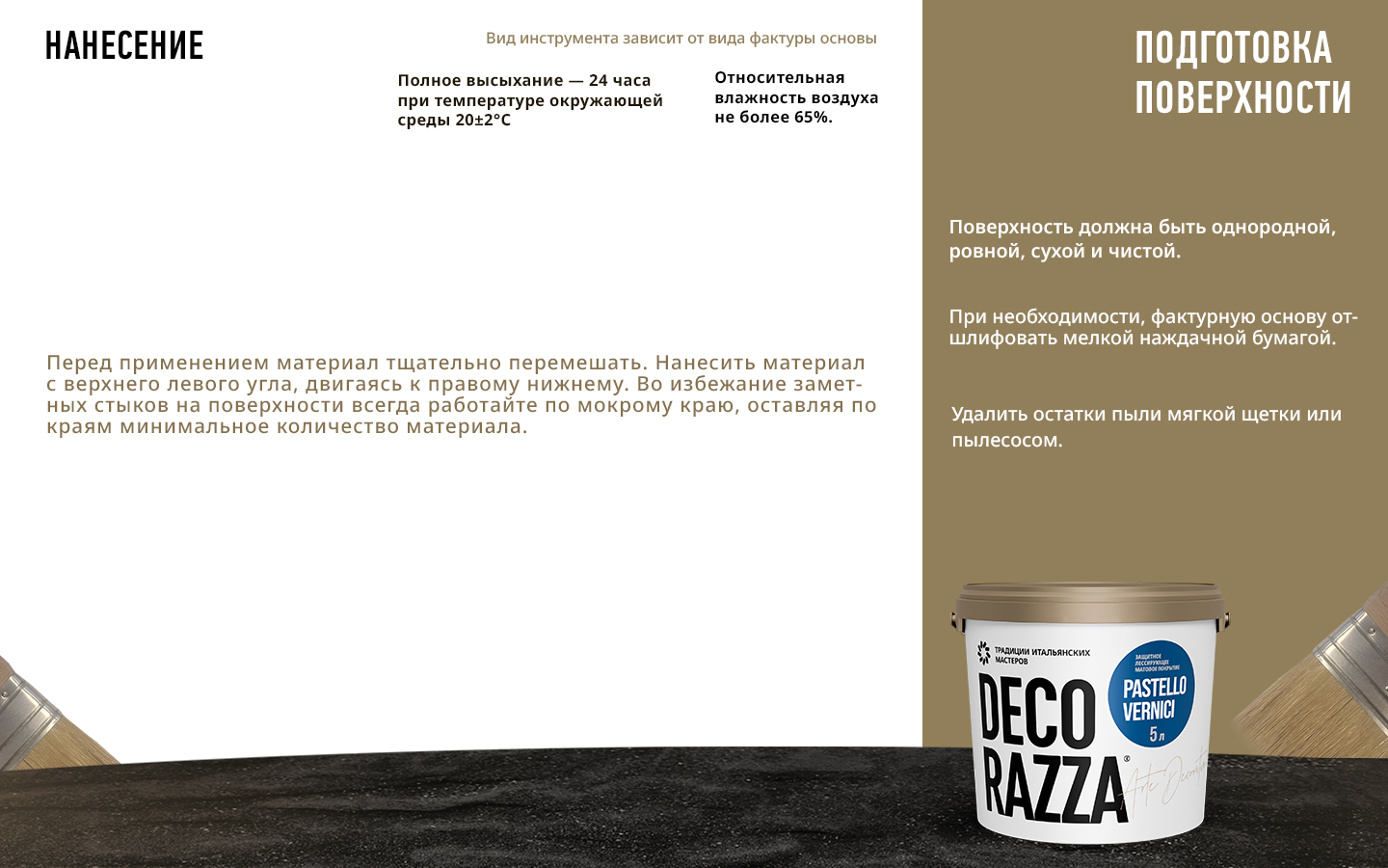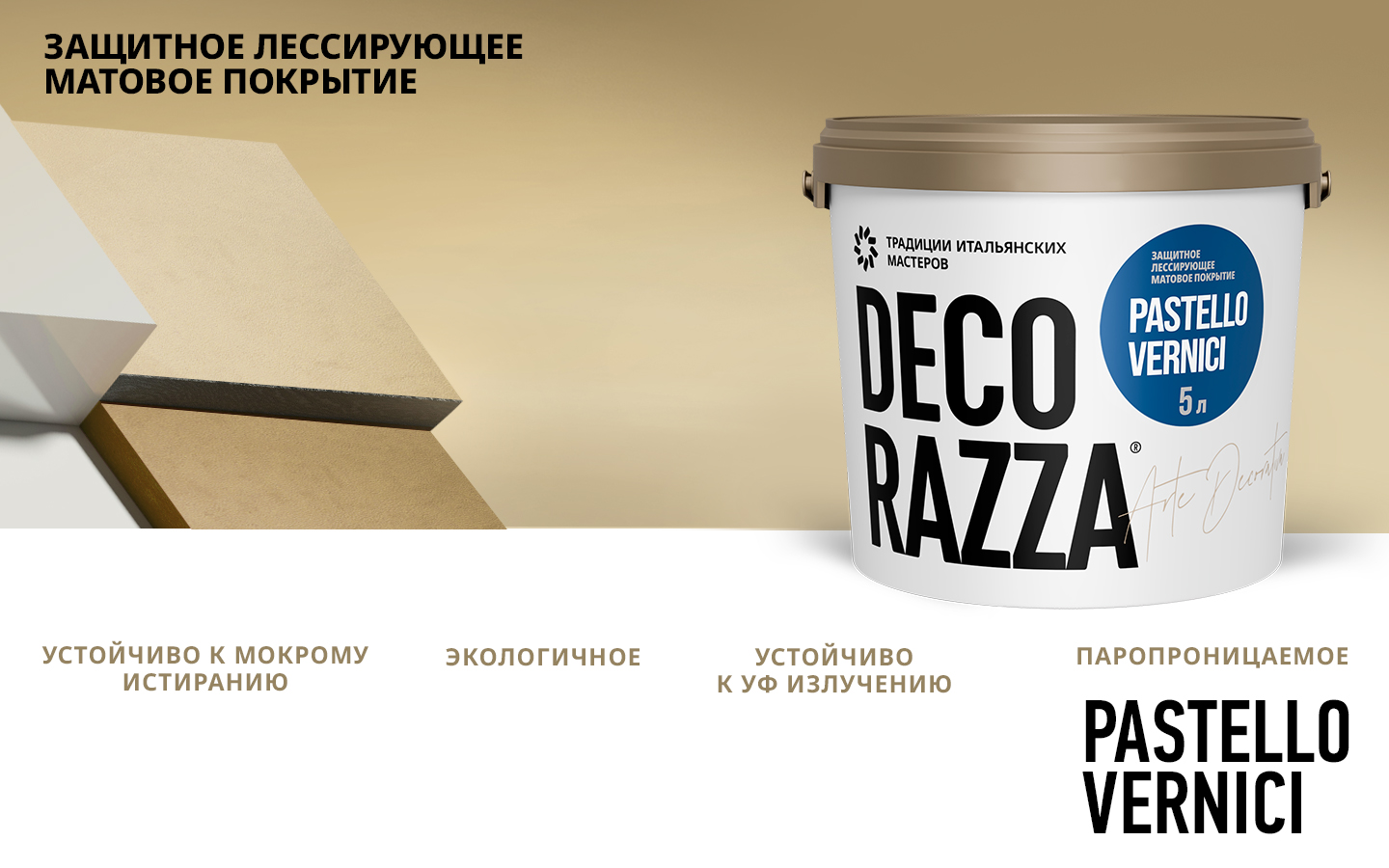 Тип продукта: Лессировка матовая PASTELLO VERNICI - Лессирующий состав для декоративных покрытий