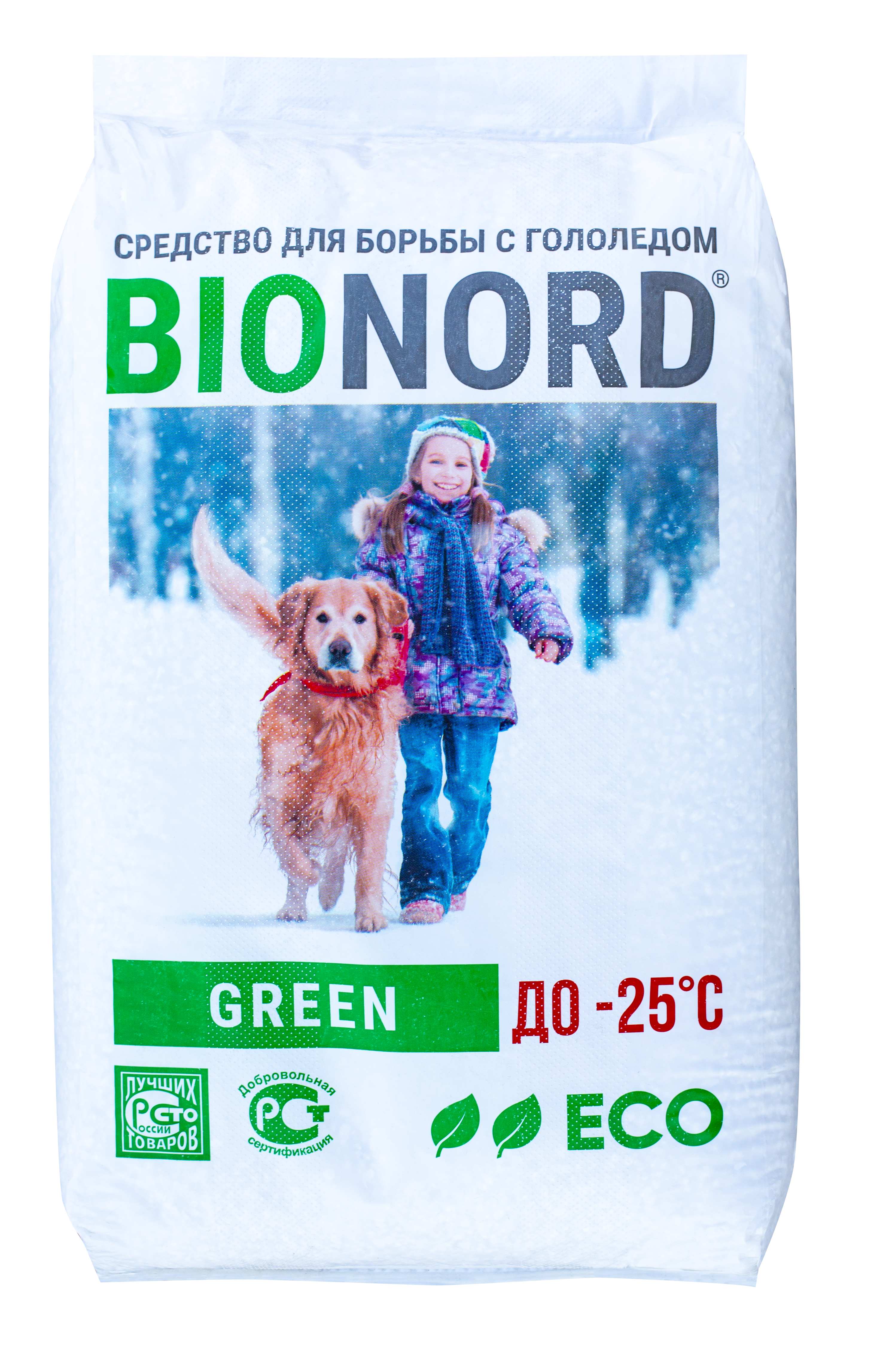 Специализированный противогололедный материал BIONORD GREEN наиболее эффективен для обработки пешеходных зон. За счёт введения в состав биофильной добавки оказывает минимальное воздействие на окружающую среду. Оптимальный выбор для использования на придомовых территориях, игровых площадках, пешеходных дорожках и в парковых зонах. Производится по передовой технологии «Единая гранула». Противогололедный материал отличается оперативным выведением из почвы и безопасностью для покрытий из плитки, камня, бетона. Экономичен: расходуется в 7 раз меньше, чем смесь песка и соли. Поставляется в мешках 12 и 23 кг, МКР 800 кг.